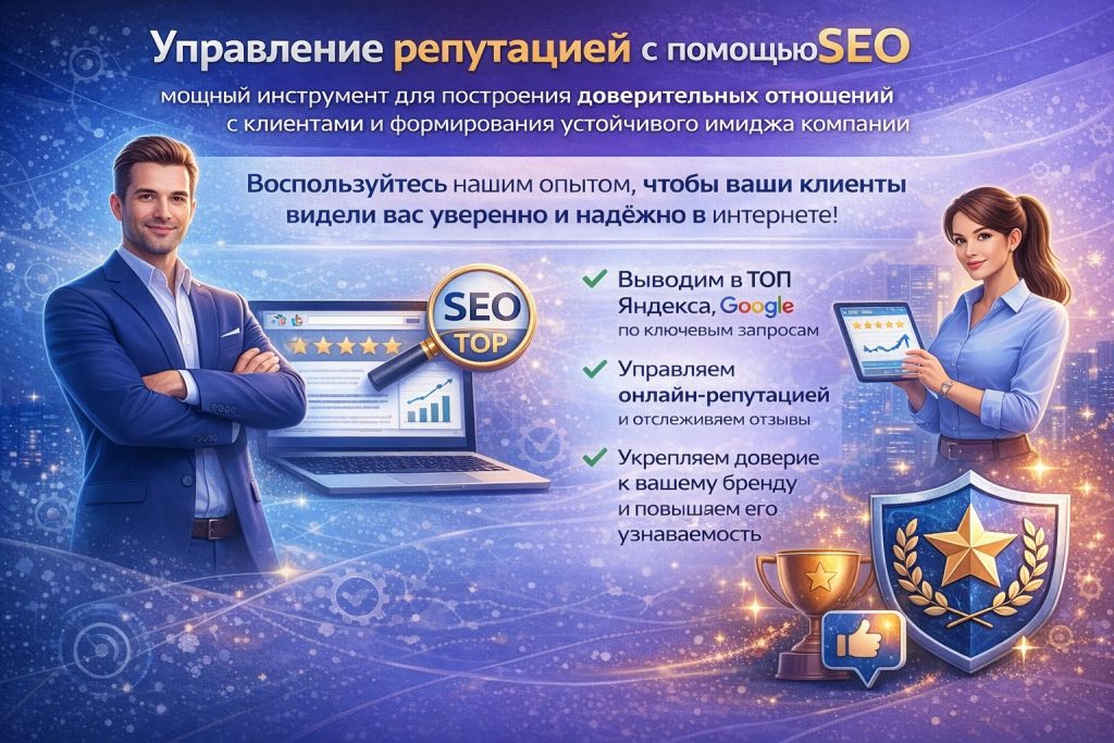 Управление репутацией с помощью SEO — мощный инструмент для построения доверительных отношений с клиентами и формирования устойчивого имиджа компании. Воспользуйтесь нашим опытом, чтобы ваши клиенты видели вас уверенно и надёжно в интернете!